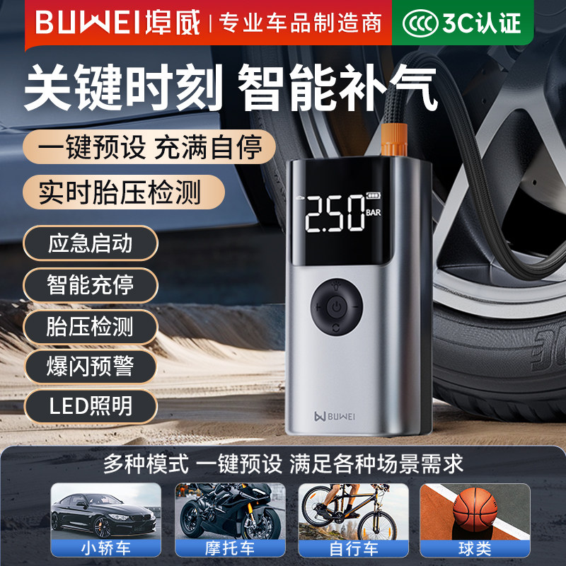 汽车用电动打气筒轿车轮胎加气宝 埠威BUWEI车载无线充气泵便携式