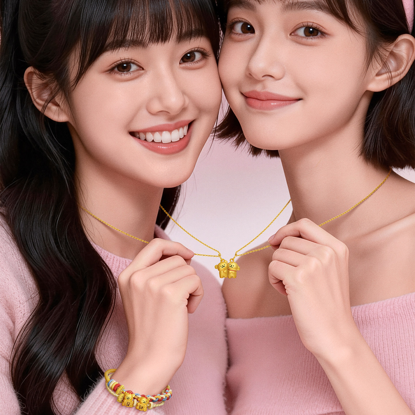 潮宏基线条小狗足金吊坠黄金硬金转运串珠磁吸好朋狗新年生日礼物由