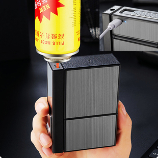 个性 定制保护盒 粗烟盒打火机一体气电二用防风直冲便携男士 20支装