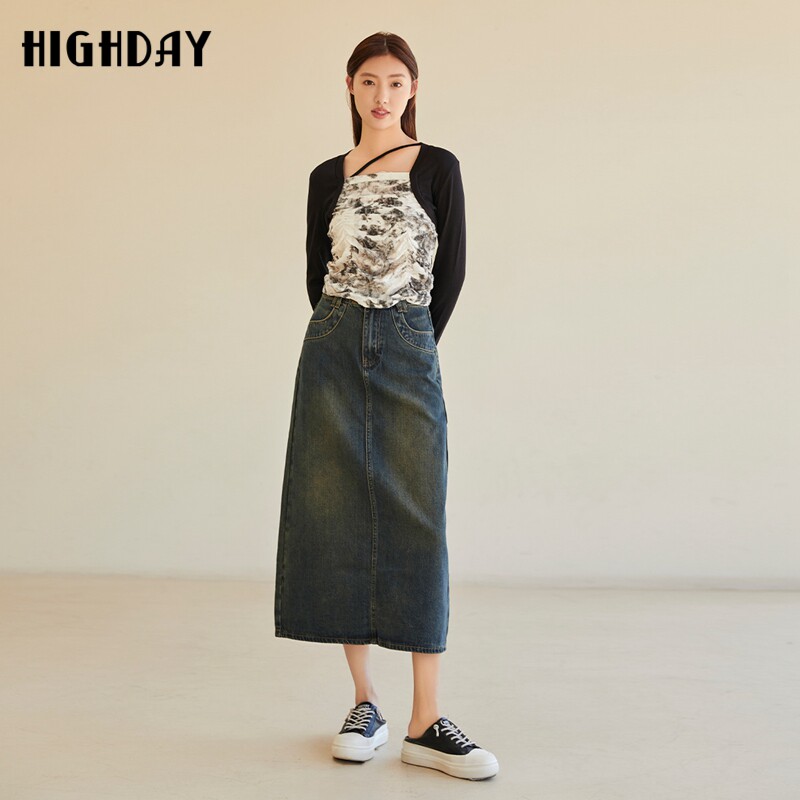 为您提供商品高腰开叉牛仔裙女做旧设计口袋过膝半身裙 highday轩日2024秋新款的详细介绍,