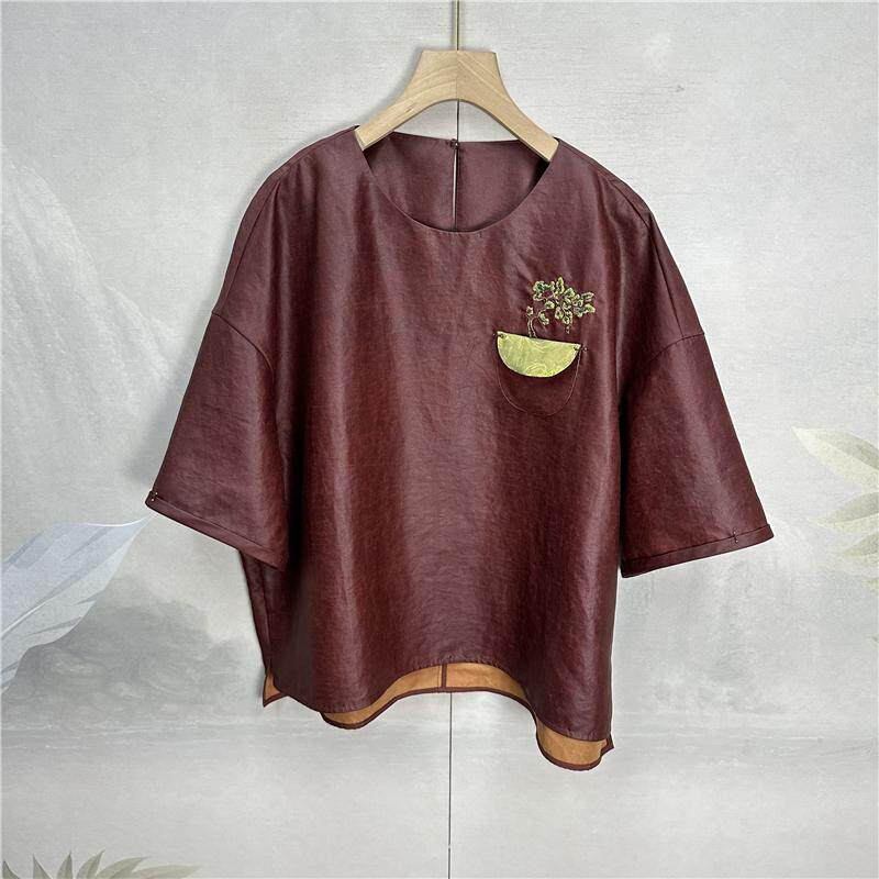 真丝两件套红云纱套装 诗家 阔腿裤 皮料上衣 高货 正宗香云纱时尚