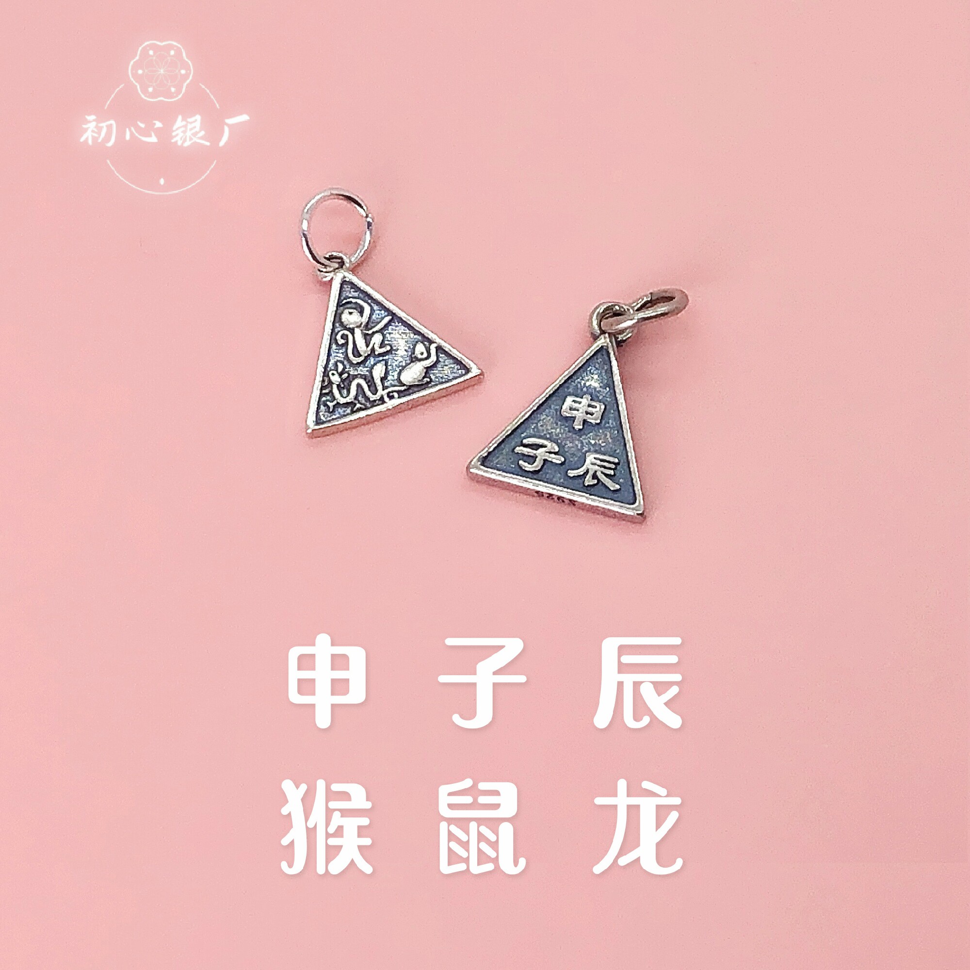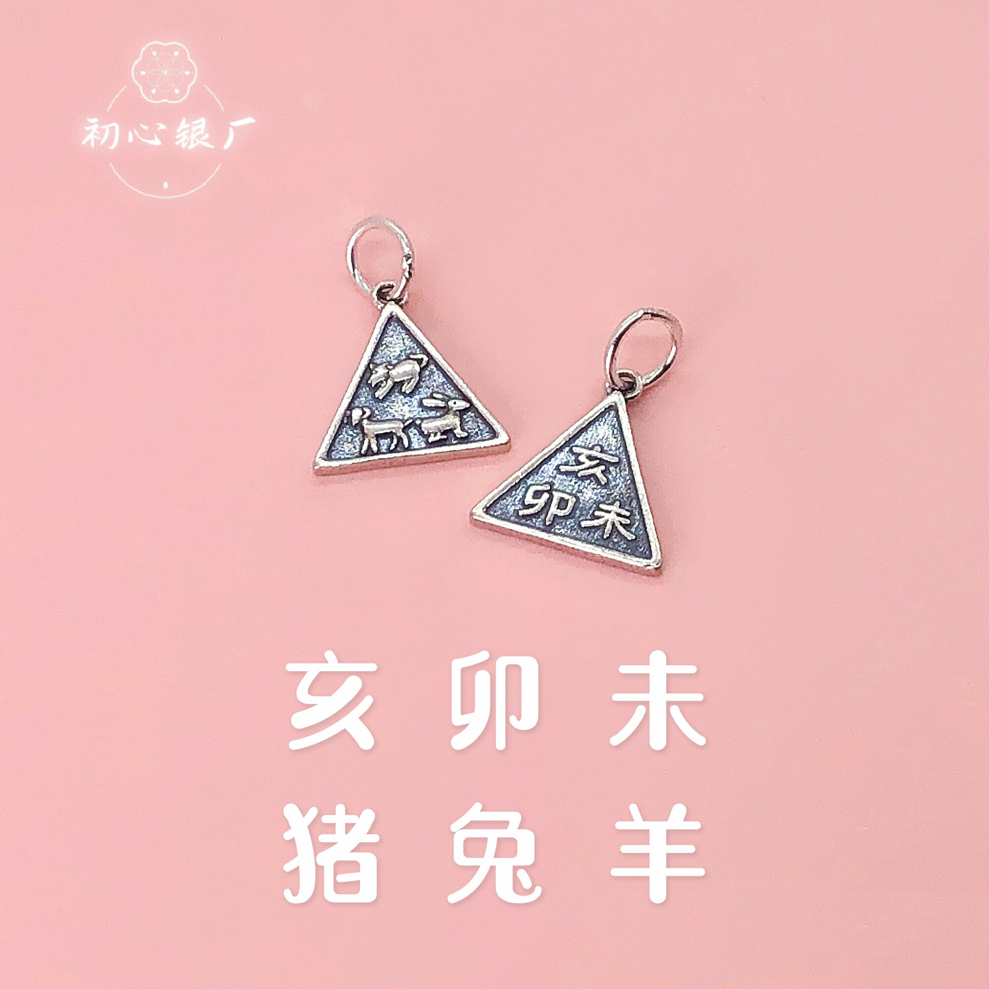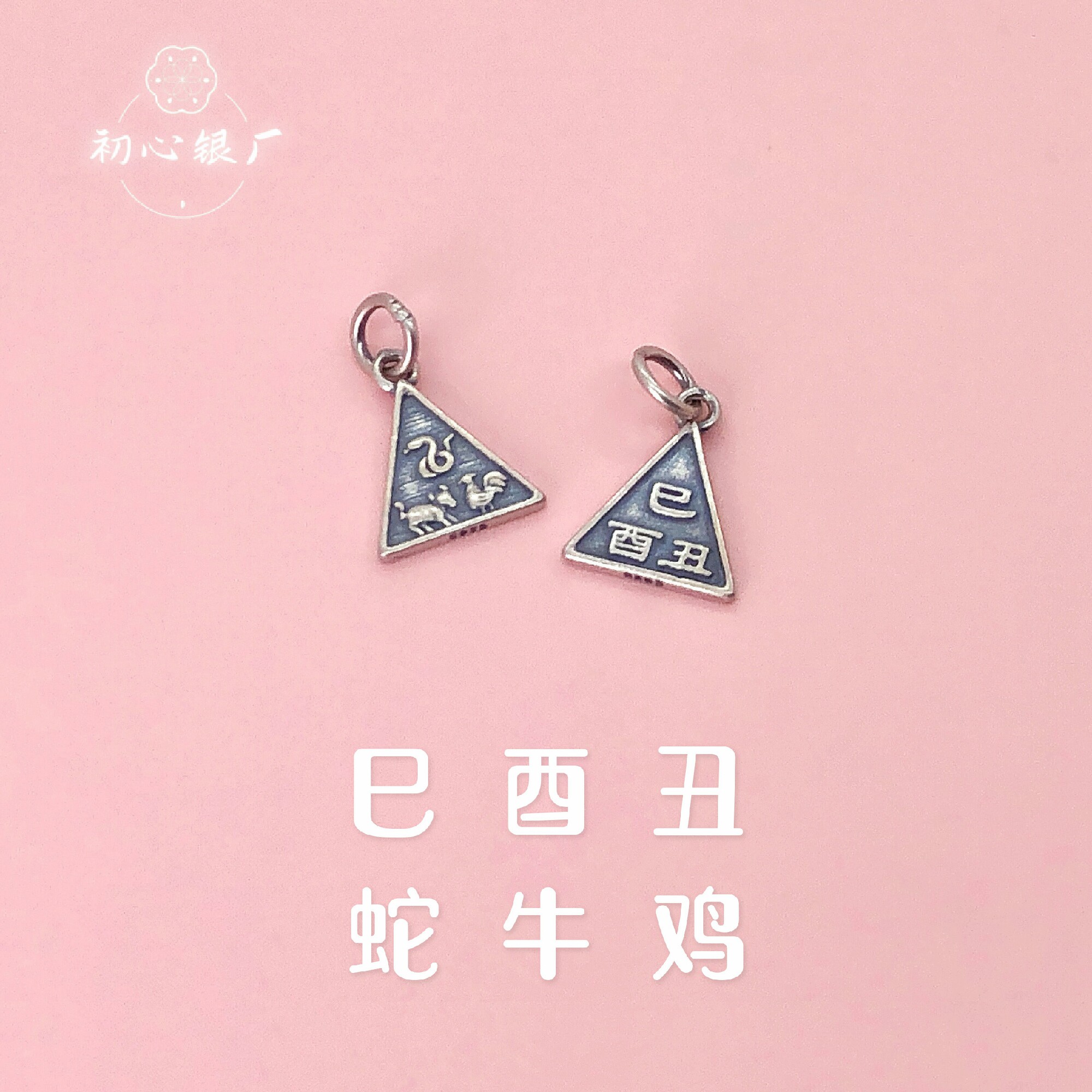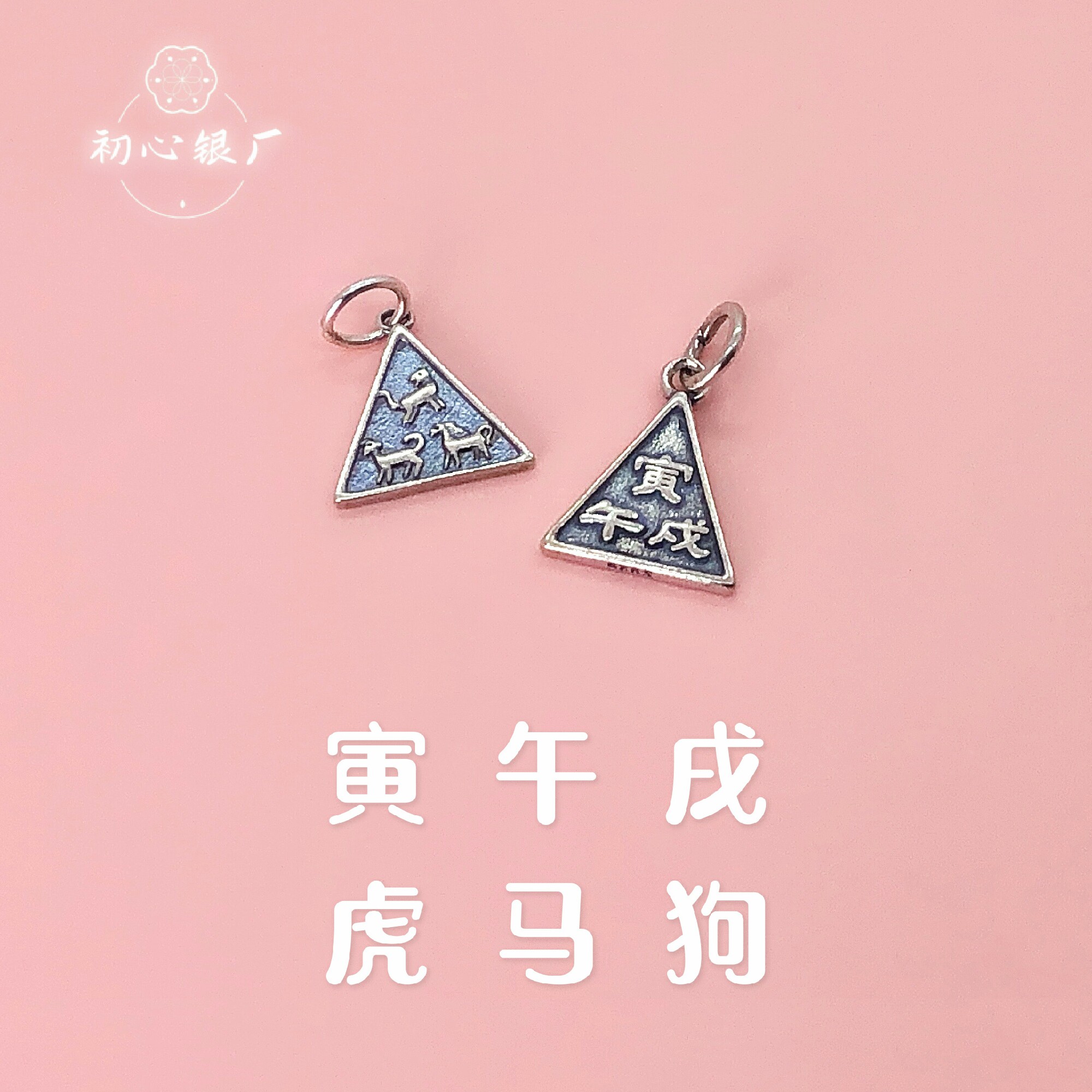 s925纯银配饰做旧生肖三合牌挂件编手绳手链项链吊坠diy吊饰配件由