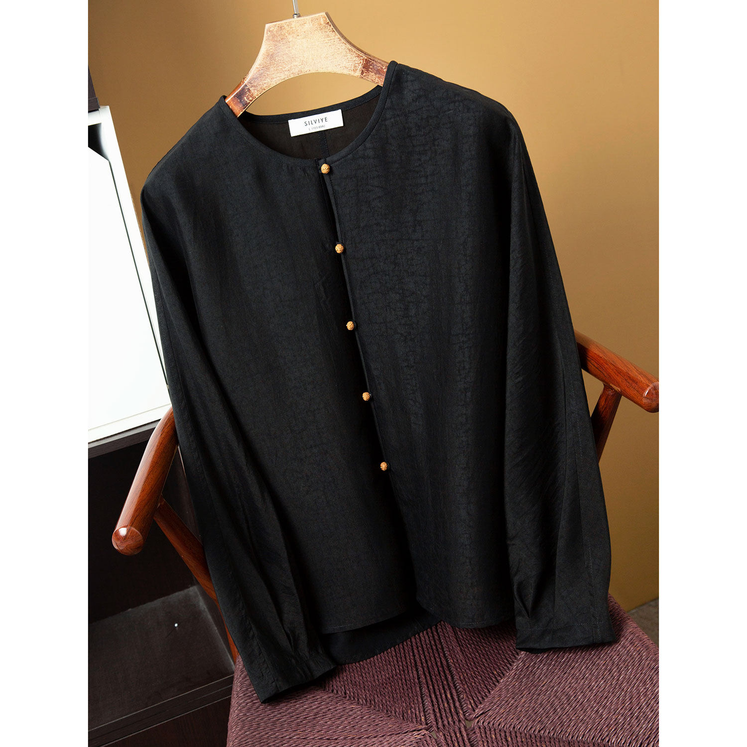 丝艺 上衣春 轻奢100%桑蚕丝红云缎老龟真丝外套女宽松香云纱开衫由