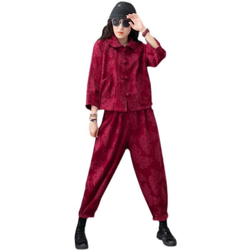 上衣裤 棉麻大码 子两件套 复古文艺妈妈唐装 民族风套装 女装 春秋新款由