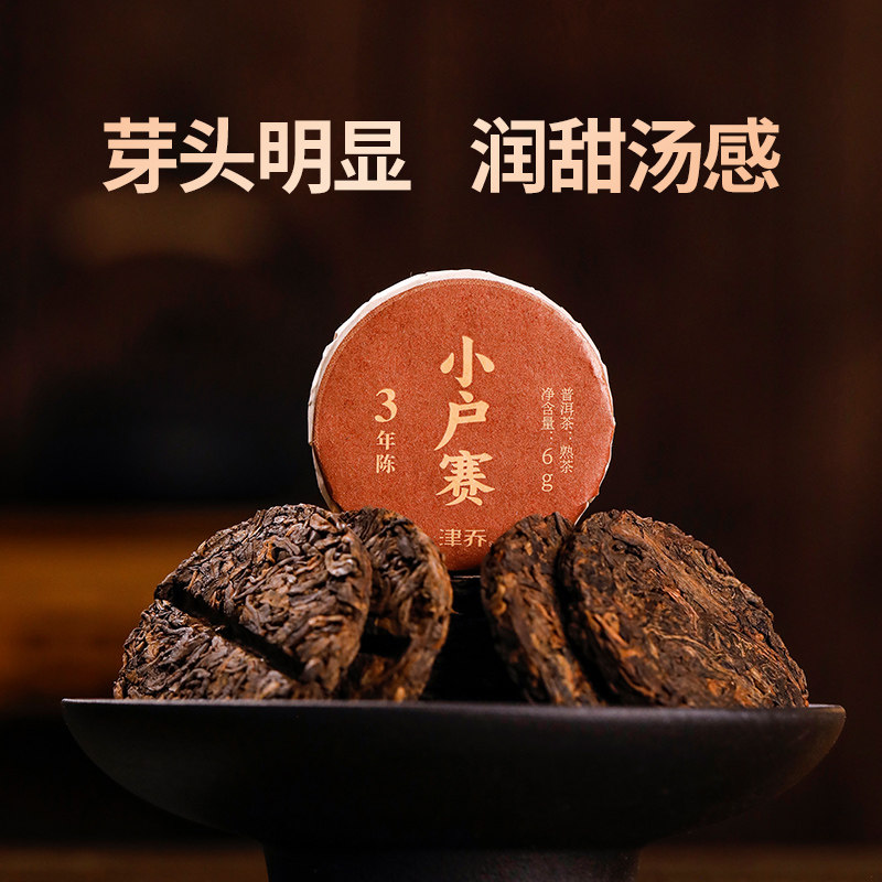 津乔普洱2024年小户赛三年陈云南古树茶叶普洱熟茶一字饼陶罐258g