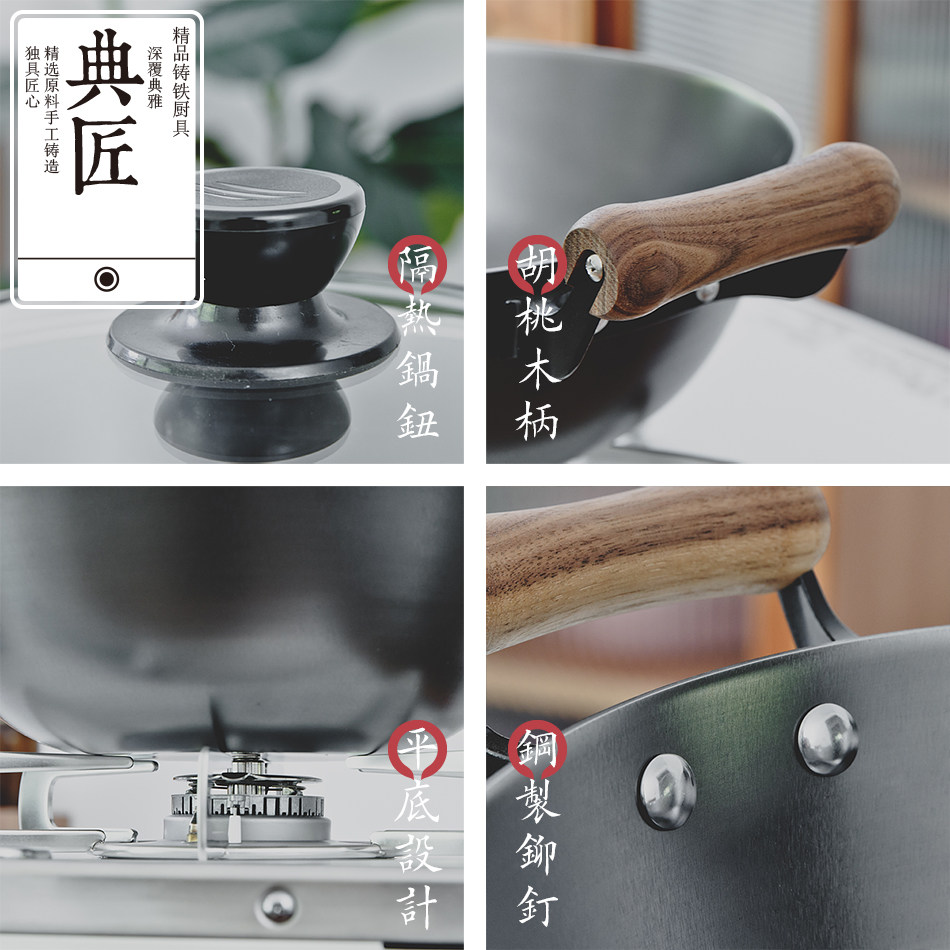 为您提供商品铁锅家用26cm燃气电磁炉 典匠铸铁小炒锅炒菜锅无涂层平底锅轻老式的详细介绍,
