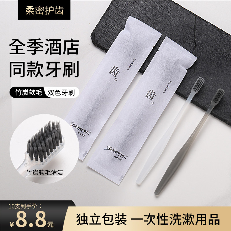 一次性家用待客男女情侣10支家庭装 酒店同款 高档竹炭软毛牙刷全季由