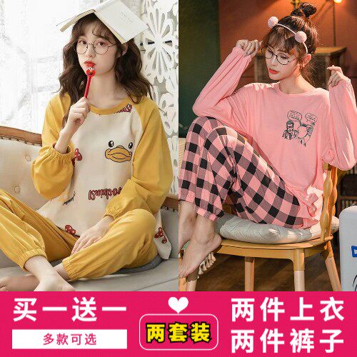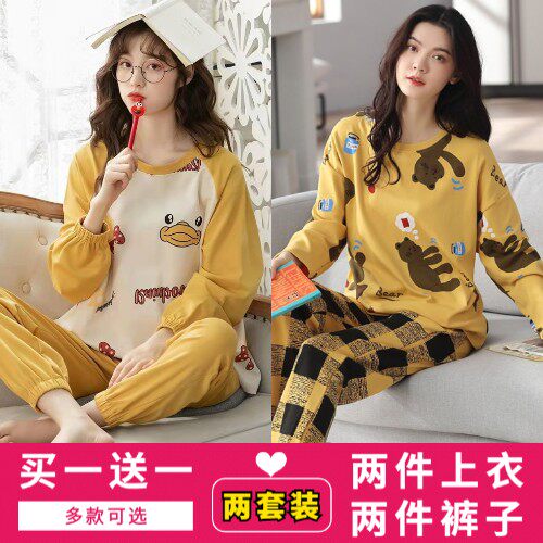 家居服套装 冬夏 纯棉大码 长袖 买一送一 睡衣女士春秋天2022新款