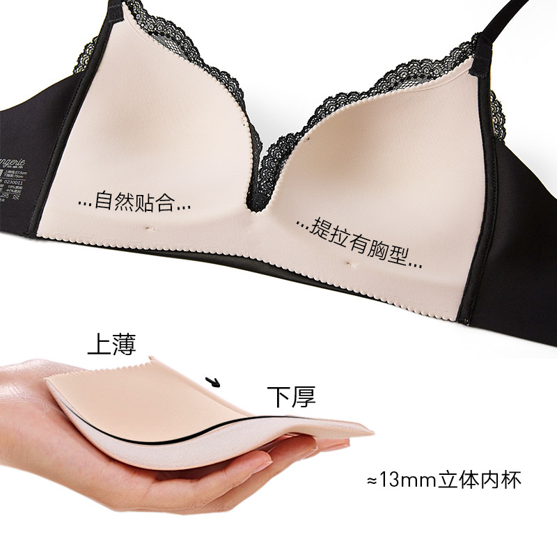 三角杯包容不空杯文胸 兰卓丽内衣女小胸聚拢无钢圈性感蕾丝法式由