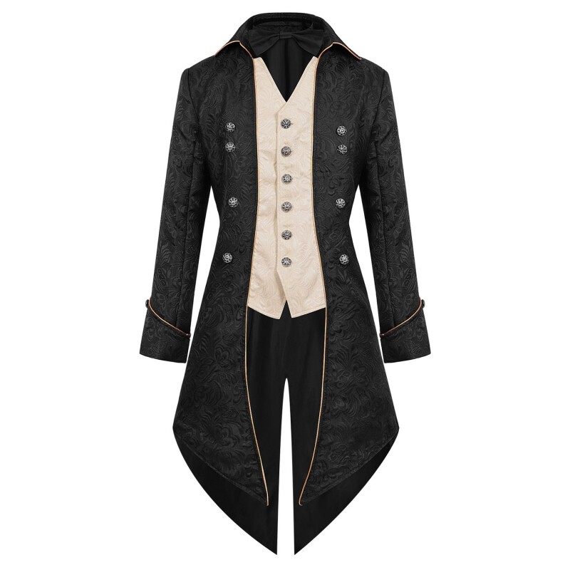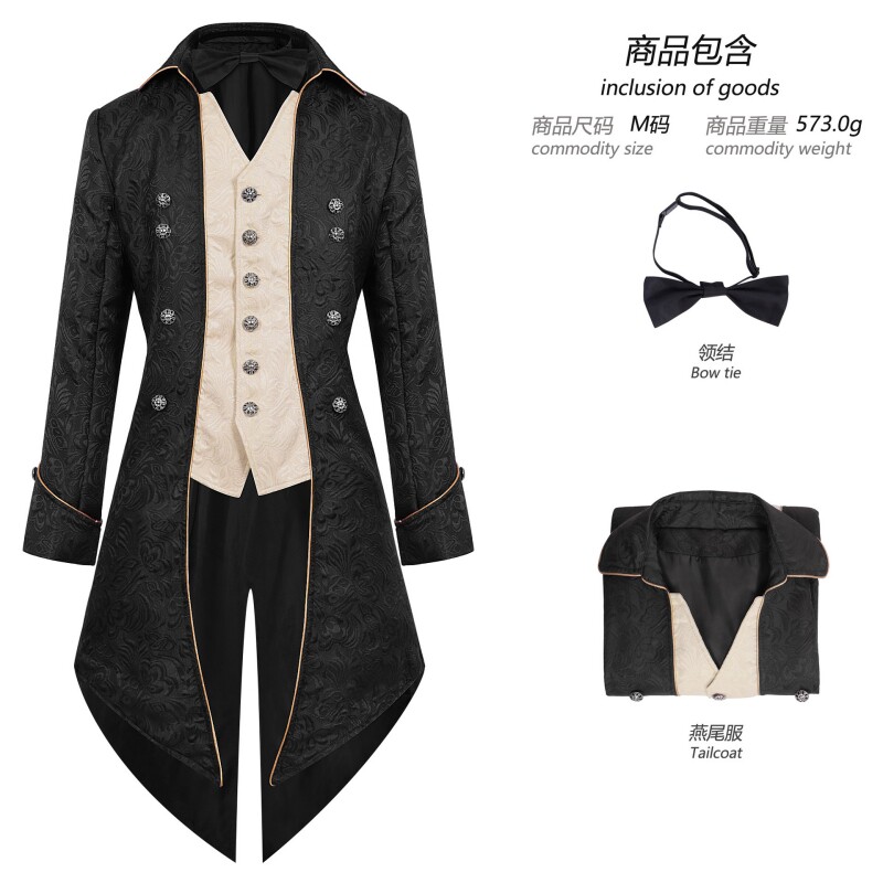 wish亚马逊欧美宫廷燕尾服中世纪复古服装 朋克外套cos服男 中长款