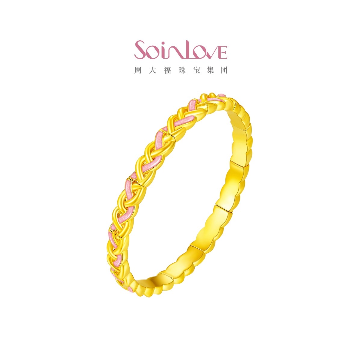 周大福SOINLOVE宝藏女孩双色编织黄金弹力手镯生日礼物由