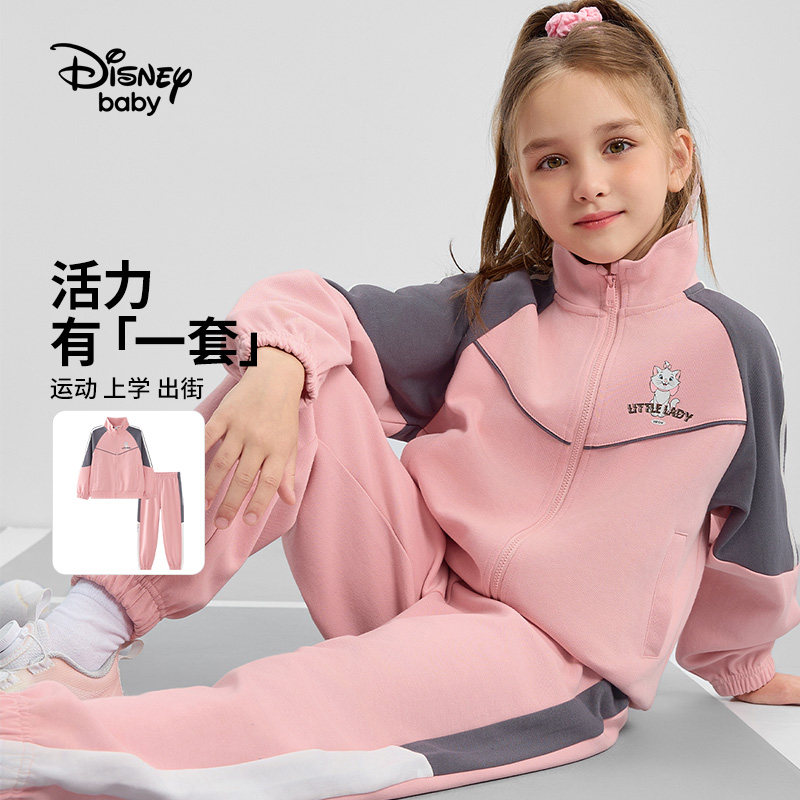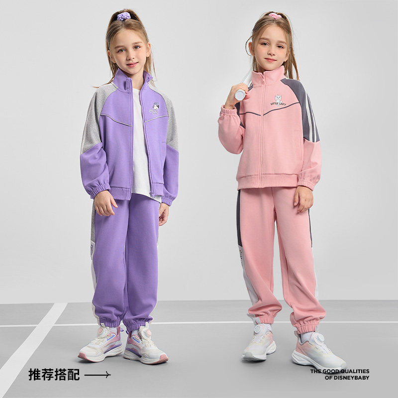 儿童撞色开衫 迪士尼女童运动套装 2026春季 新款 两件套洋气百搭 卫裤由