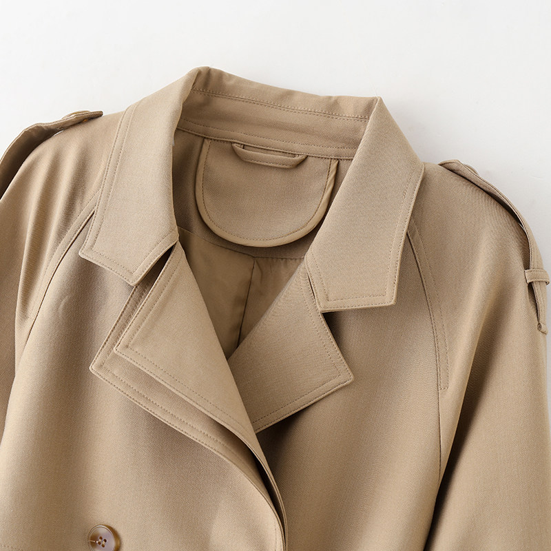 风衣外套女2026春新款 双排扣小个子高级感外套 卡其色短款 范洛经典