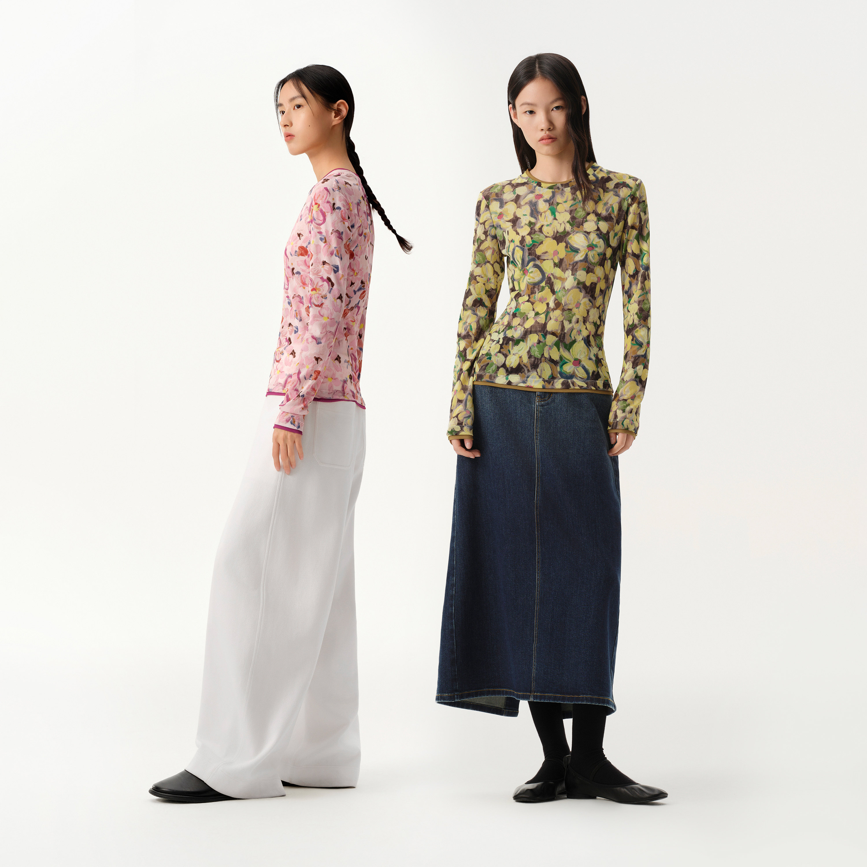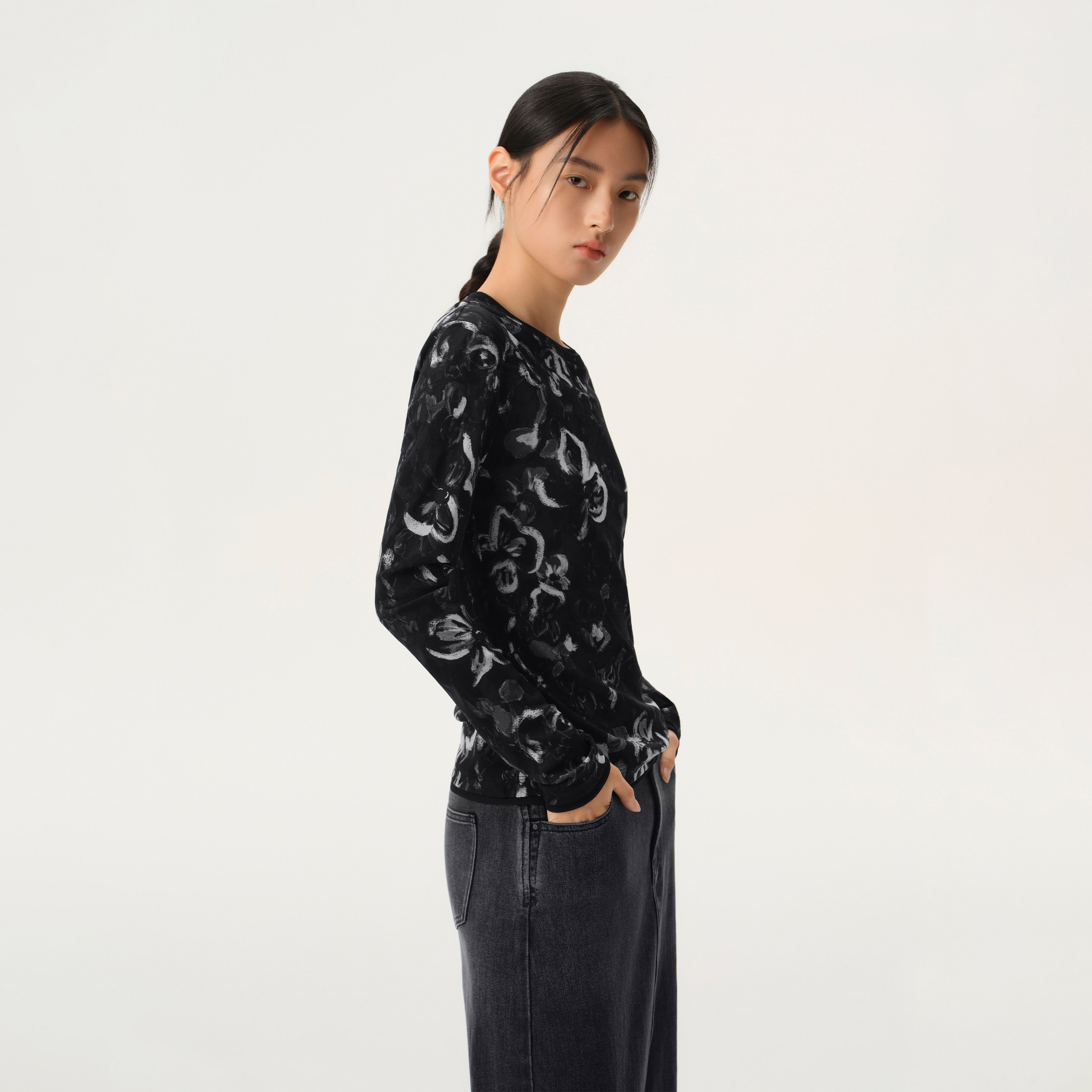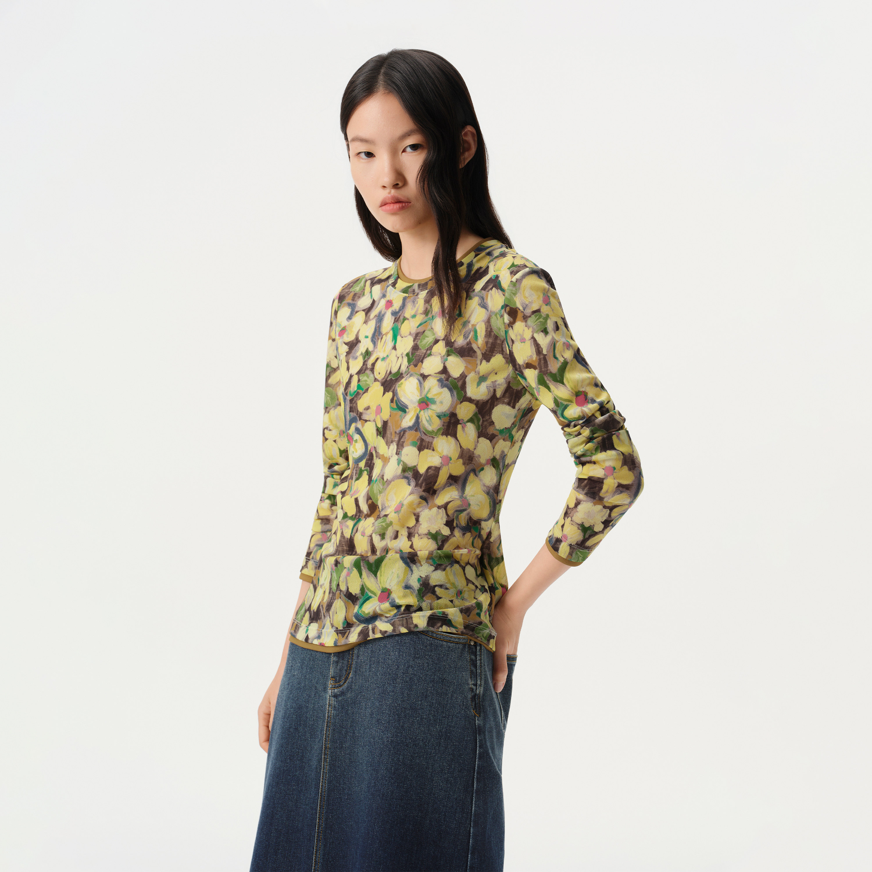 T恤女气质上衣26春新款 BDT1YD1222 云丝柔雾纱印花长袖 播商场同款
