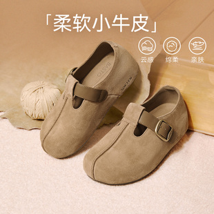 丁字鞋 全包日系情侣牛皮低帮复古平底勃肯London系列 软木包头女鞋