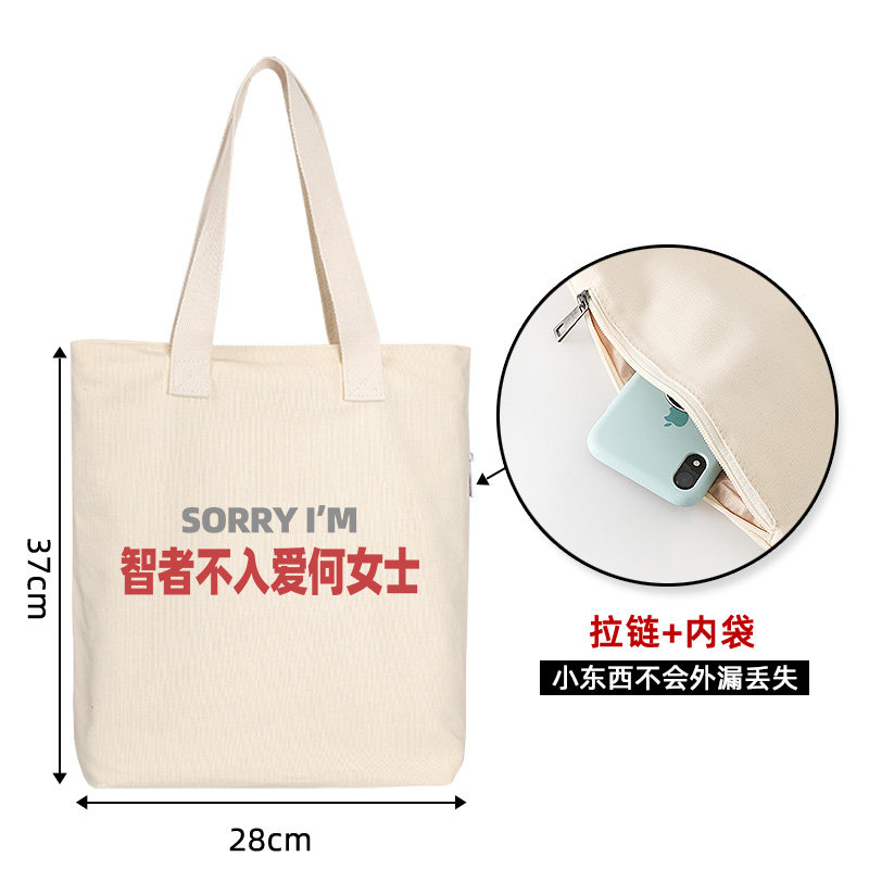 sorry智者不入爱何你奈我何女士帆布包通勤包大容量托特包单肩包