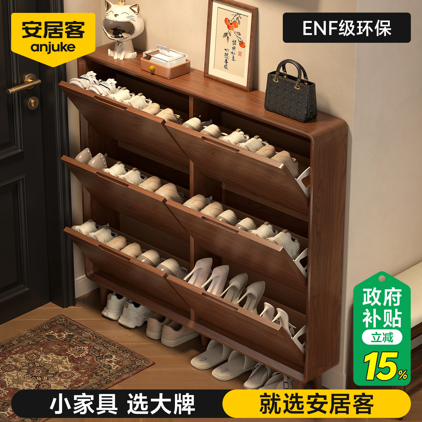收纳柜一体靠墙入户门口鞋 架 柜家用门口超薄2026新款 安居客实木鞋由