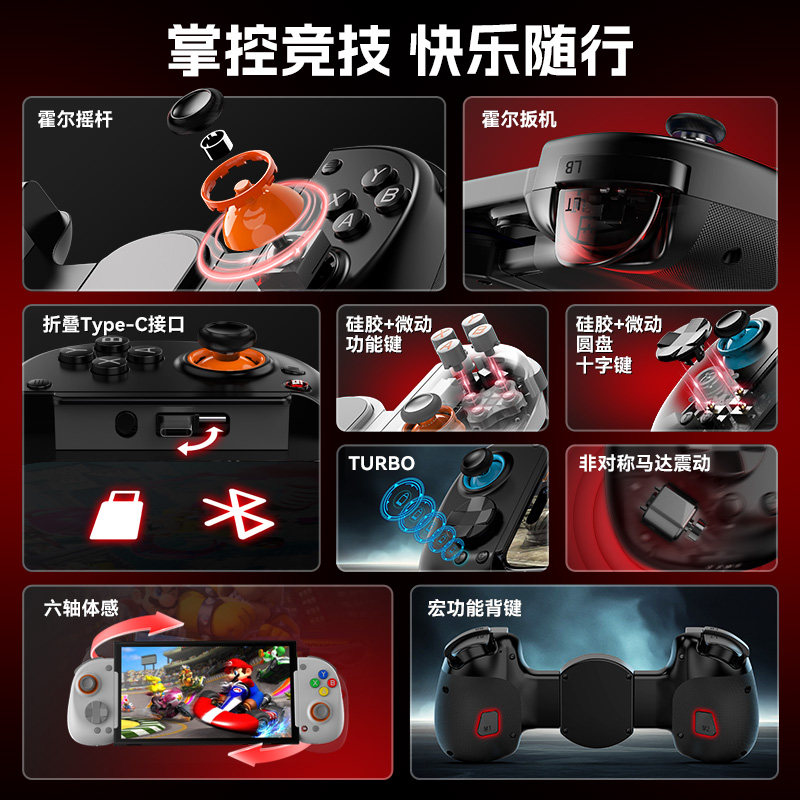 C口有线蓝牙安卓ios手机电脑手柄 拉伸游戏手柄双霍尔折叠TYPE