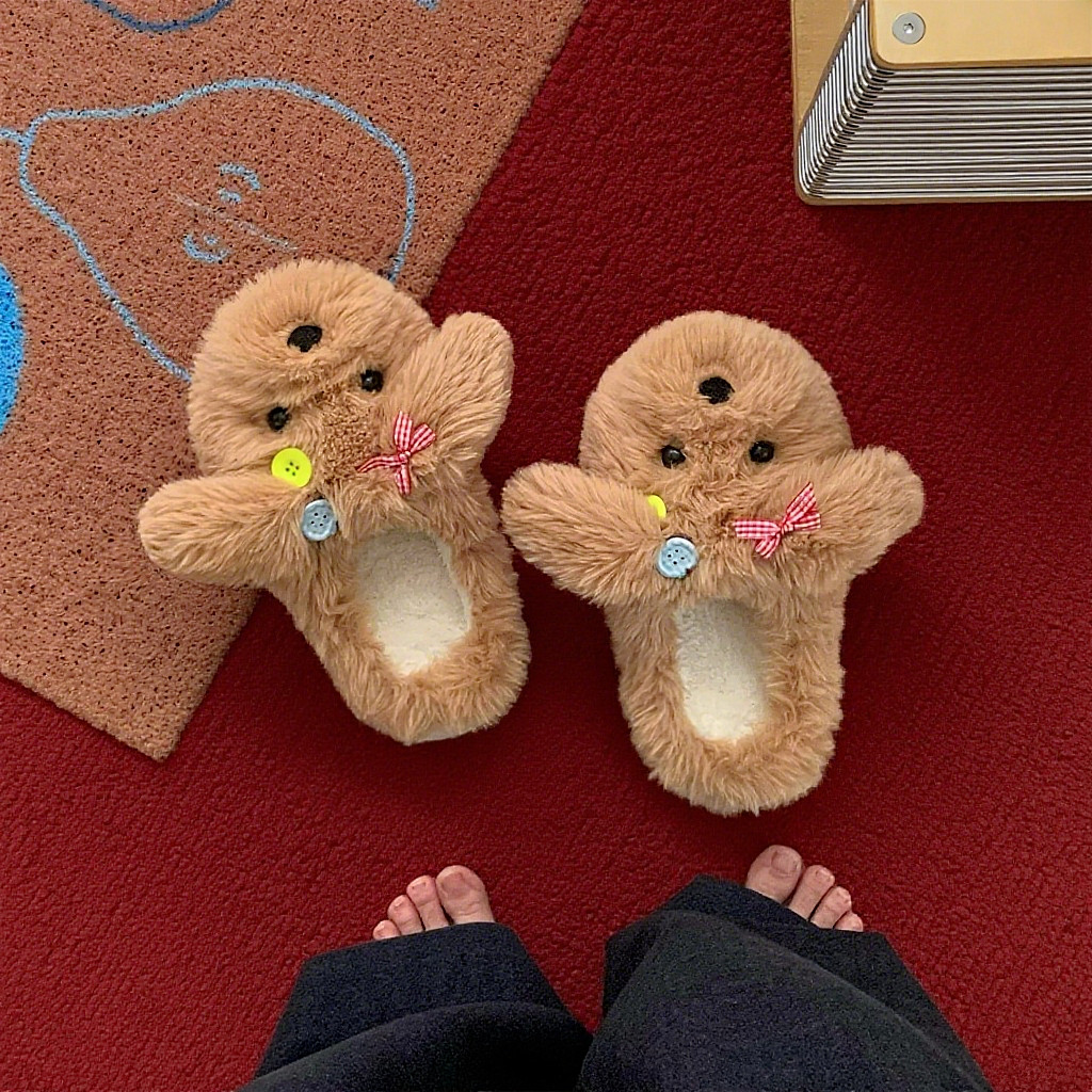 月子鞋 细细条 少女心家居泰迪毛毛鞋 新款 可爱小狗棉拖鞋 2025冬季