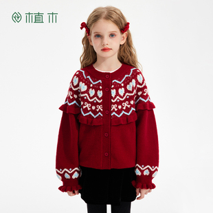 儿童费尔岛毛衣女童开衫 新年礼物 植木童装 中大童 2026秋冬新款由
