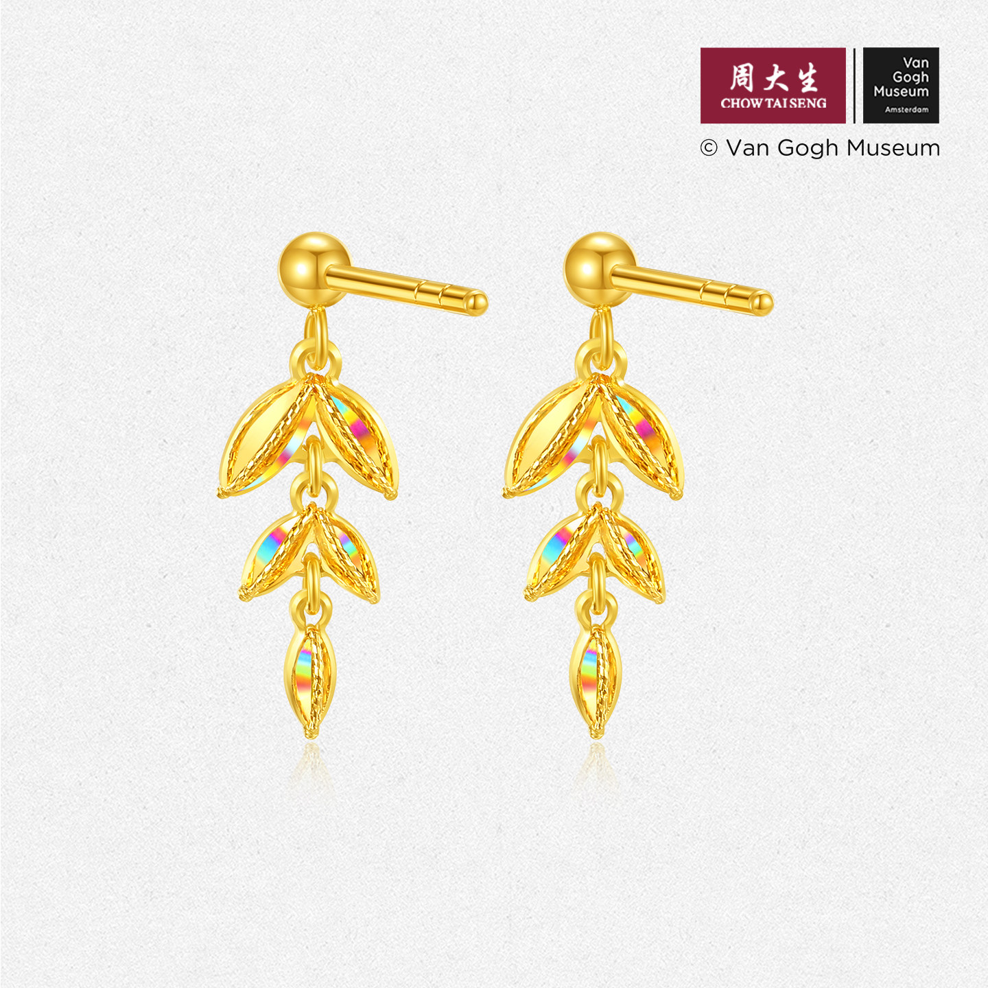 周大生黄金耳钉女5G足金风吹麦浪耳饰爆闪麦穗耳环生日礼物送女友由
