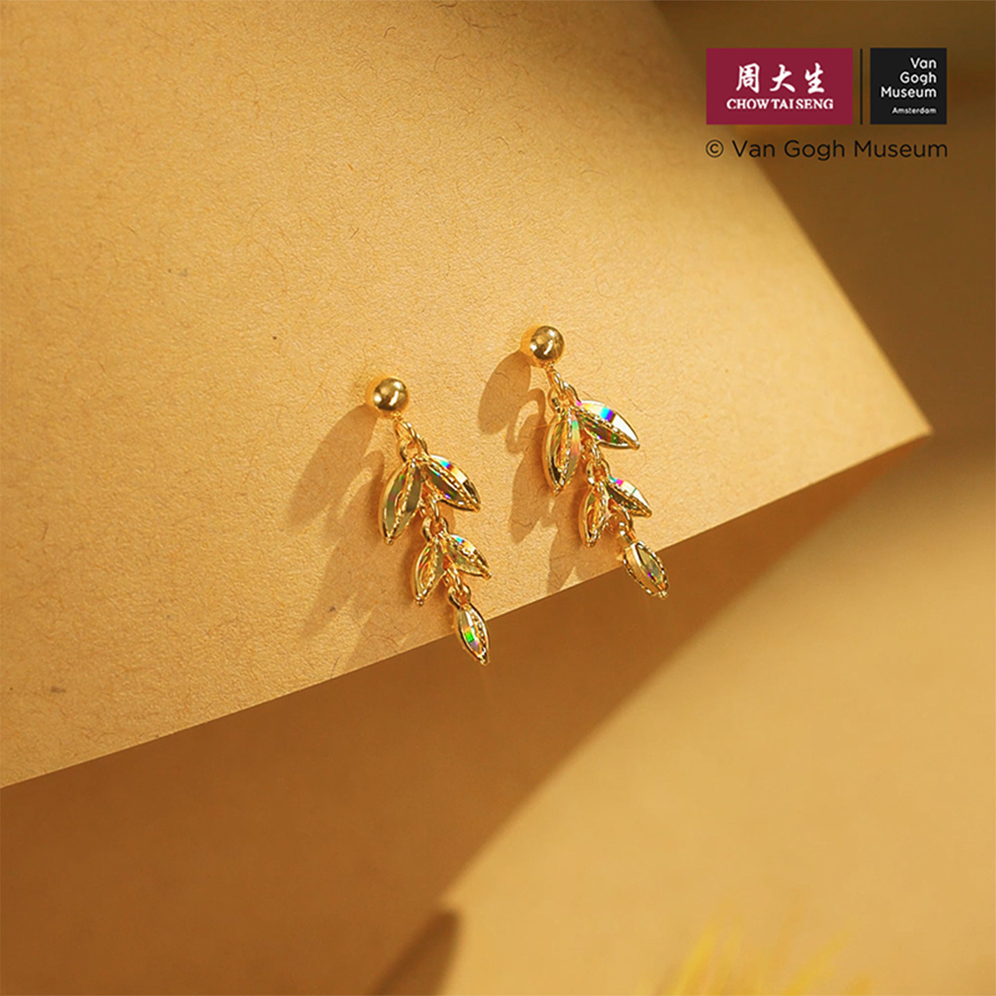 周大生黄金耳钉女5G足金风吹麦浪耳饰爆闪麦穗耳环生日礼物送女友