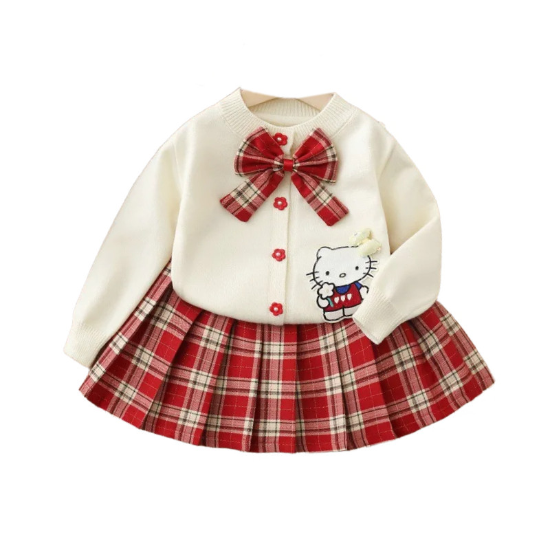 新款 洋气儿童衣服卡通学院风两件套 秋冬季 女童针织毛衣JK裙子套装由