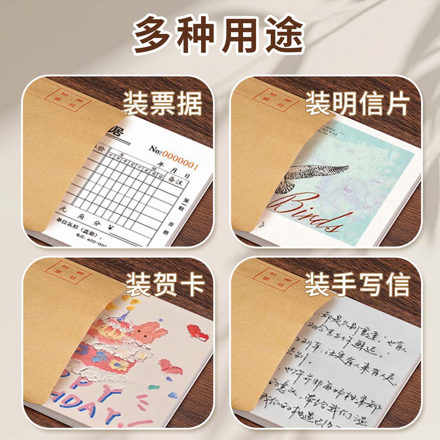 钱袋子信封信纸大小号白工资袋增值税专用发票袋创意复古邮局可邮寄标准袋子批发邮政封口A4纸 加厚牛皮纸装