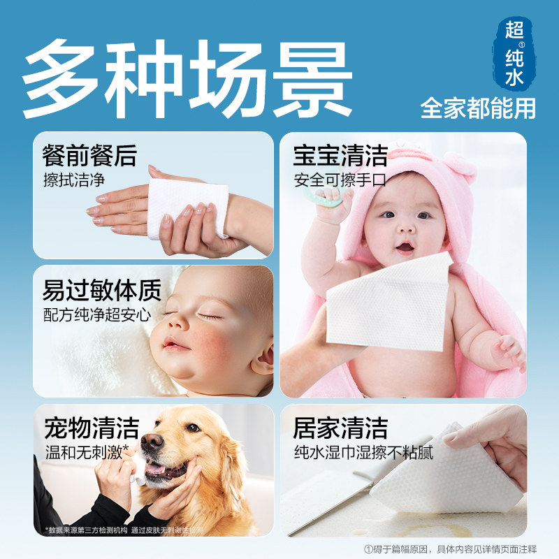 答菲纯水湿巾80片 纯水湿厕纸100抽家庭装 交个朋友由