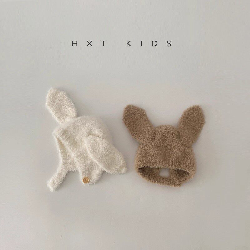 超萌可爱小兔子冬天婴儿保暖毛绒包头帽子 新生儿宝宝护耳帽秋冬季