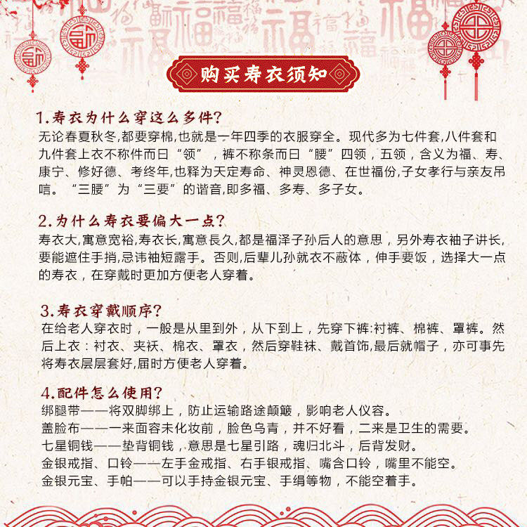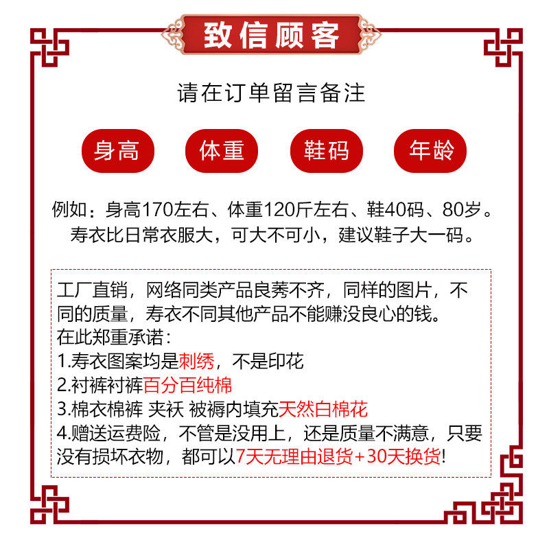 为您提供商品纯棉骨灰盒逝死人百年送寿终老年人老人衣服全套 寿衣寿老衣女男士的详细介绍,