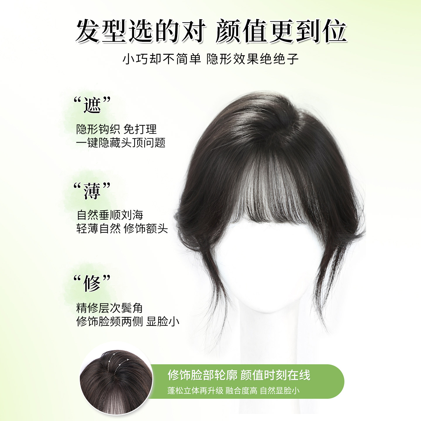 为您提供商品刘海补发片 天空树假发女片头顶增发量蓬松高颅顶遮白发全真发法式的详细介绍,