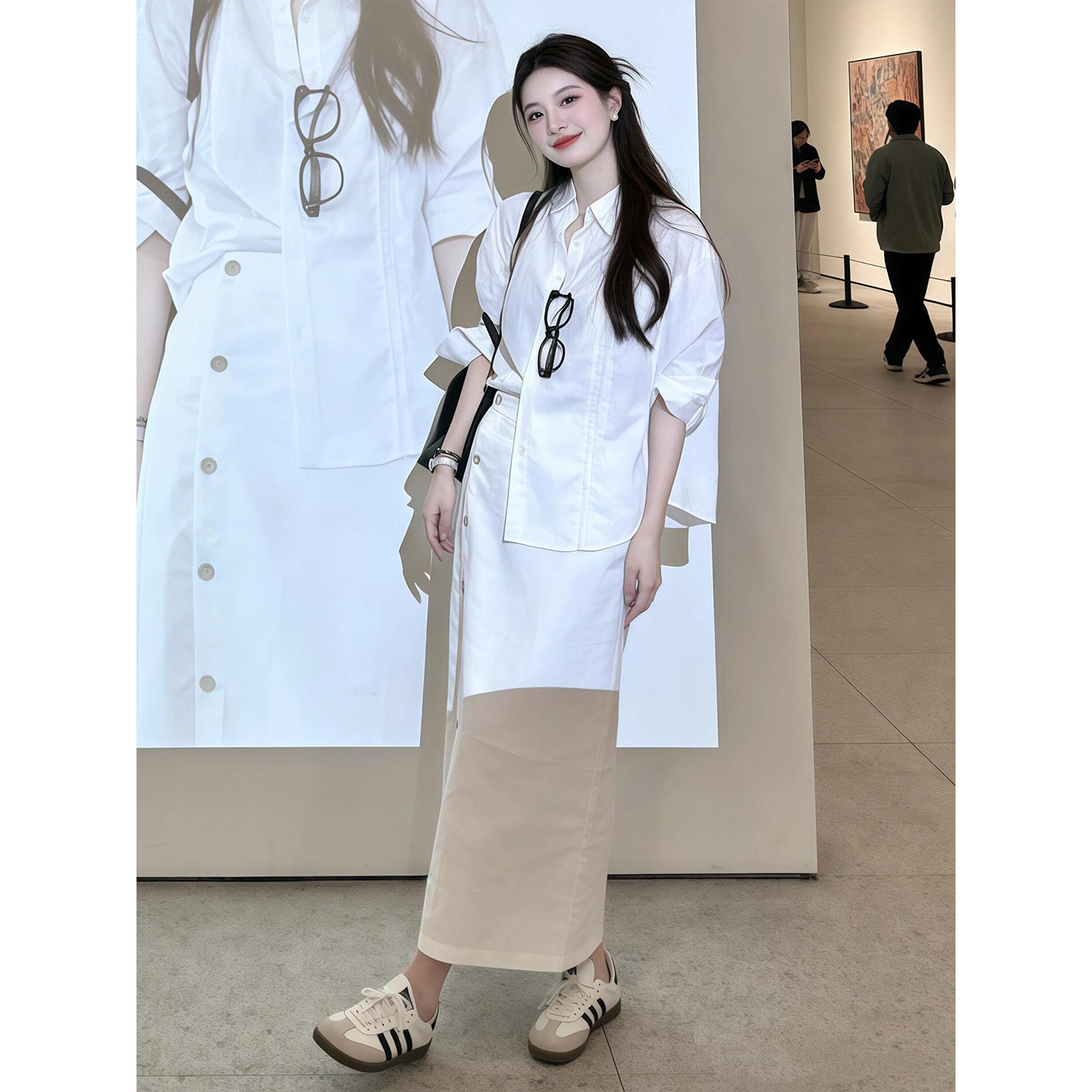 2026年新款 法式 高级感白色衬衫 连衣裙子女春季 长裙 慵懒风气质套装