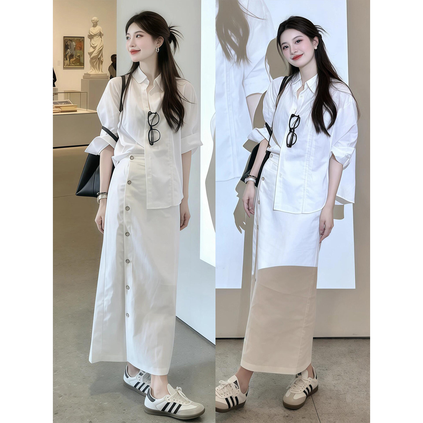 2026年新款 法式 高级感白色衬衫 连衣裙子女春季 长裙 慵懒风气质套装由