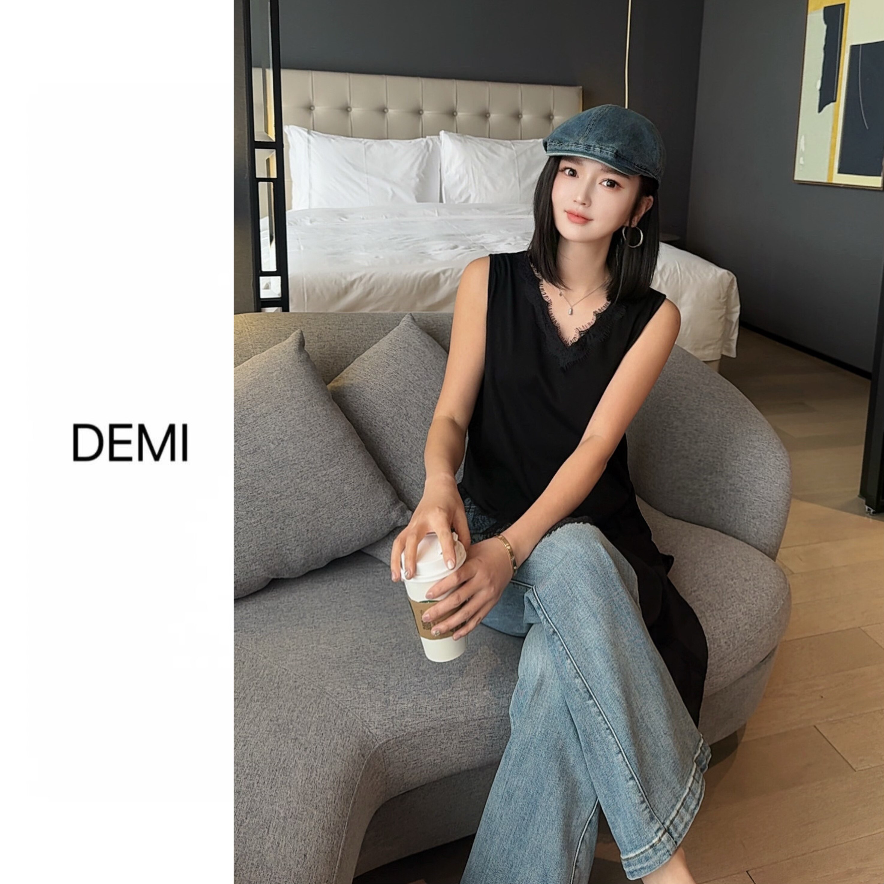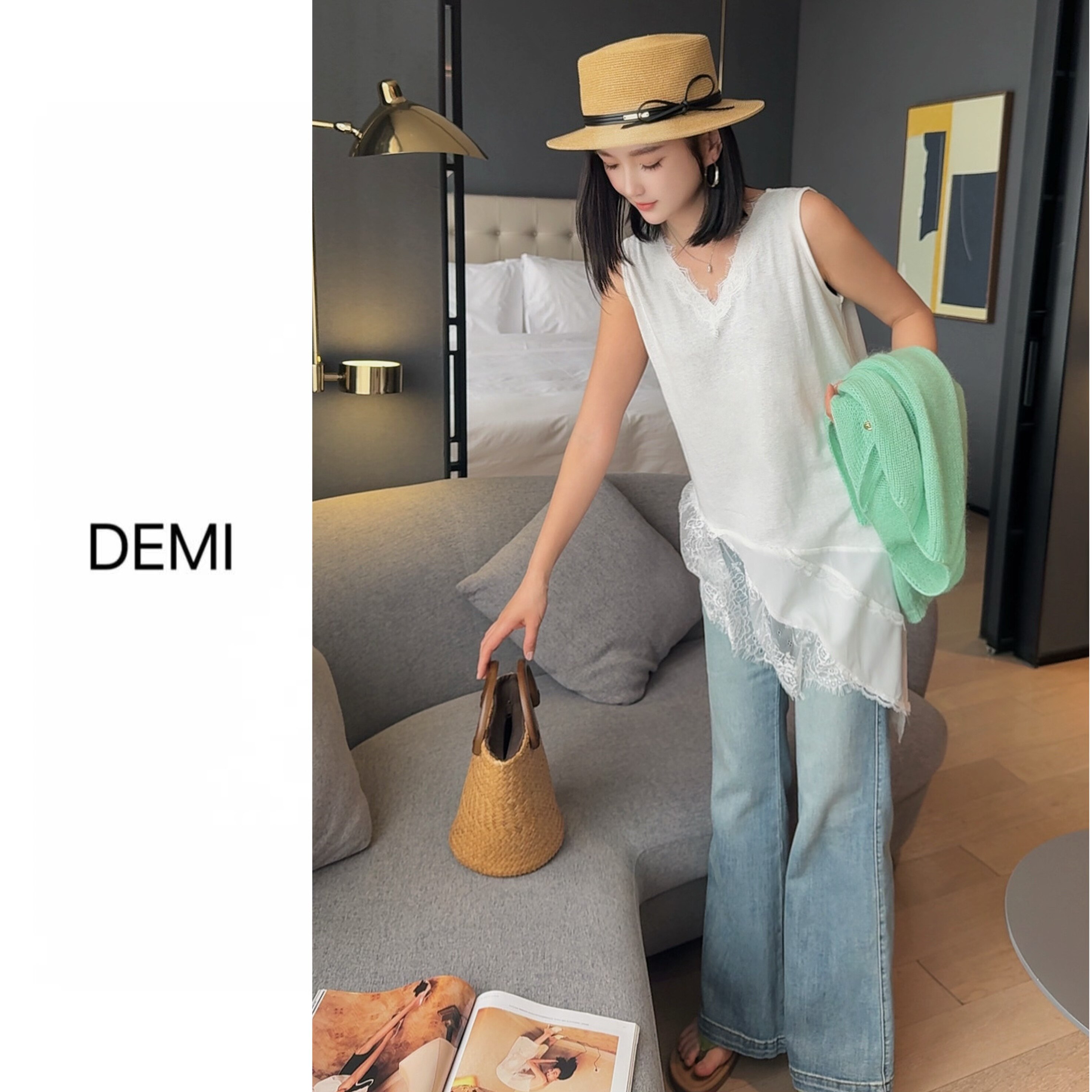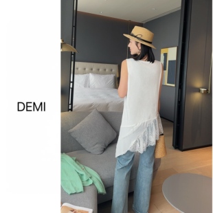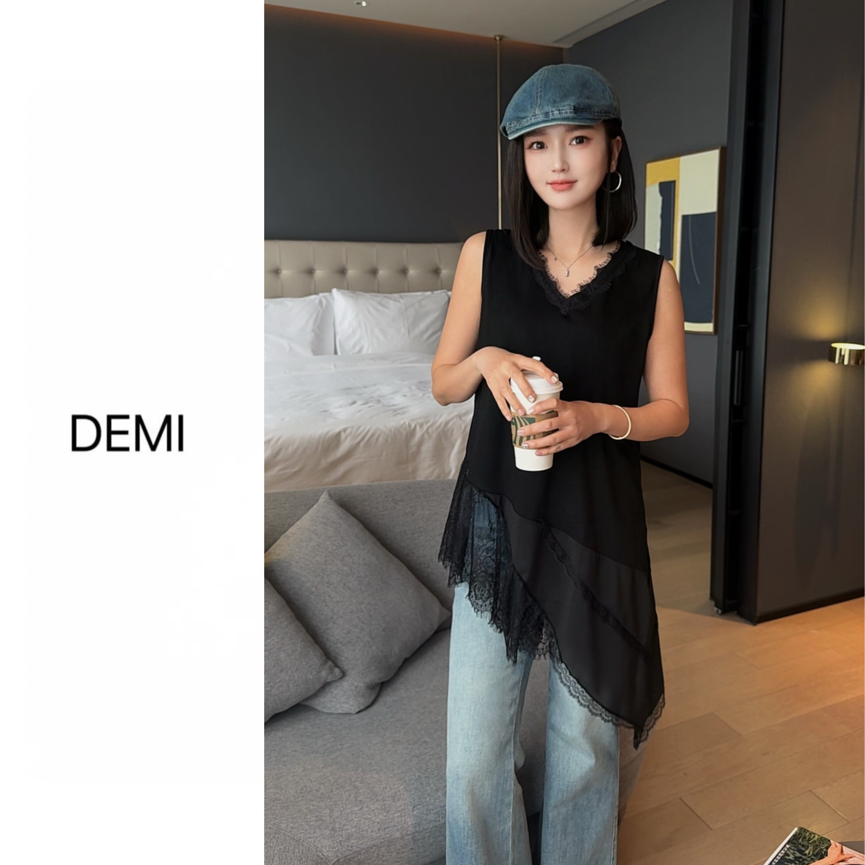 MISS 新款 V领蕾丝边不规则长背心裙叠穿无袖 内搭F1696 RUILI定制由
