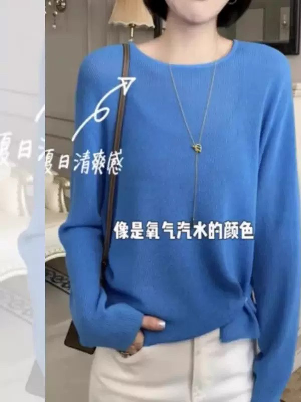 为您提供商品春新款 设计感宽松圆领针织衫 女侧开叉百搭上衣打底 风和日丽的详细介绍,