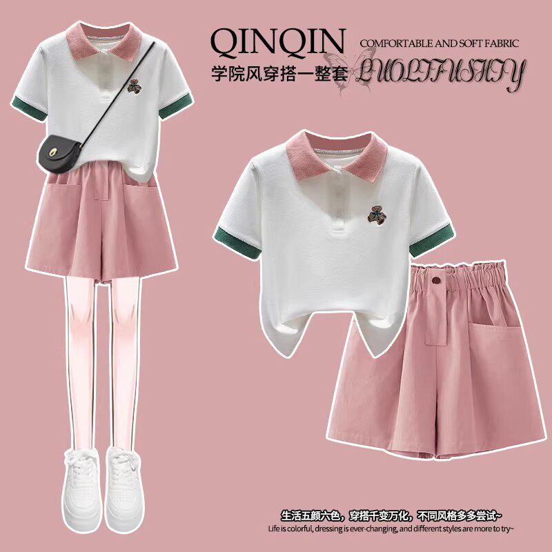为您提供商品透气洋气女孩2026新款 夏装 短袖 两件套POLO衫 运动学生休闲短裤 套装的详细介绍,