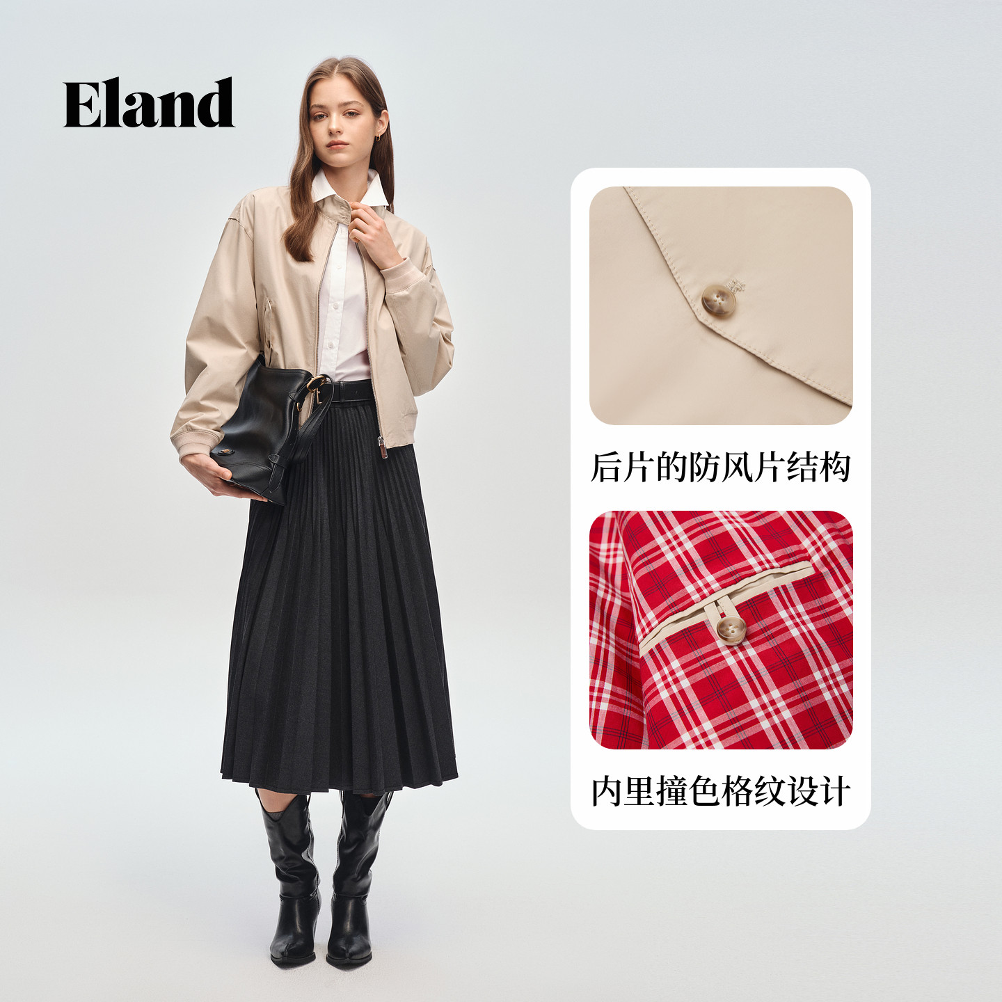 为您提供商品Eland衣恋短外套女英伦风短款 宽松夹克2026春季 新款 100%棉的详细介绍,