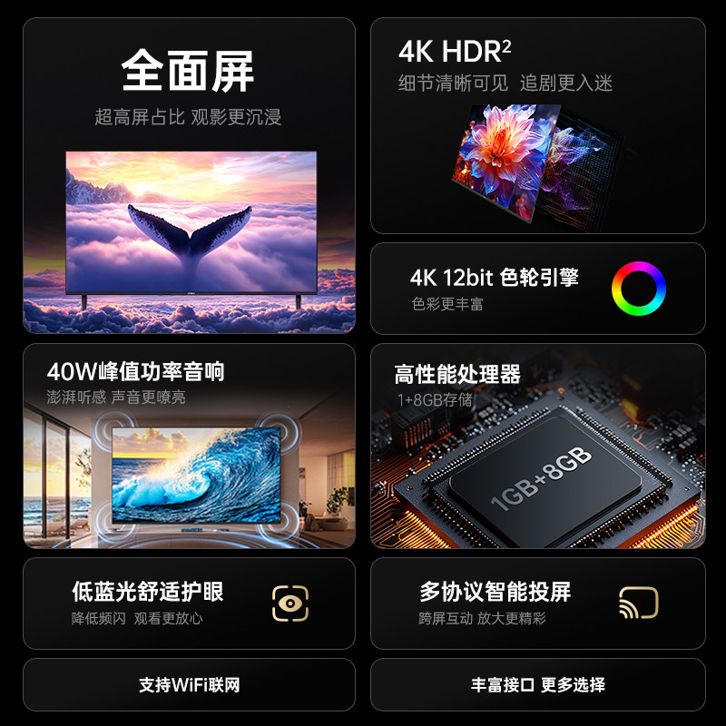 55英寸144Hz高刷高色域 TCL电视 55V8L Pro 64GB大内存平板电视