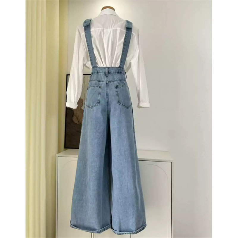 为您提供商品长裤 2025夏季 子 背带裤 慵懒减龄高腰浅蓝色牛仔阔腿裤 新款 复古美式的详细介绍,