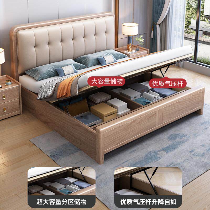 现代简约实木床1.8米主卧双人床1.5M单人经济型高箱储物大床