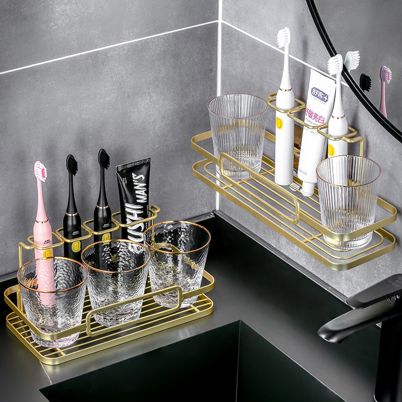 轻奢电动牙刷置物架免打孔壁挂式 卫生间 2人漱口杯刷牙杯2021新款