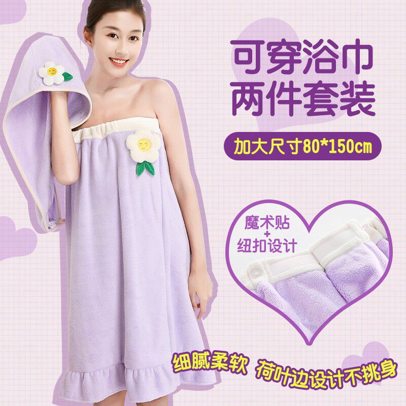 浴巾女2021新款 浴袍懒人浴 非全棉家用纯棉吸E水大人可穿可裹巾式