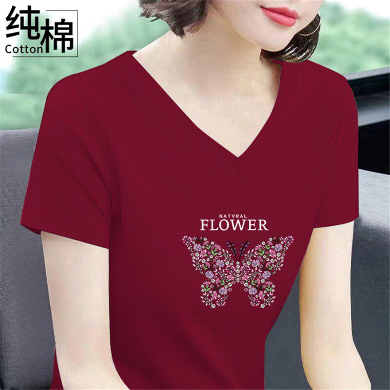 为您提供商品纯棉v领短袖 韩版 中年妈妈夏装 打底上衣宽松显瘦洋气 t恤女2024新款的详细介绍,