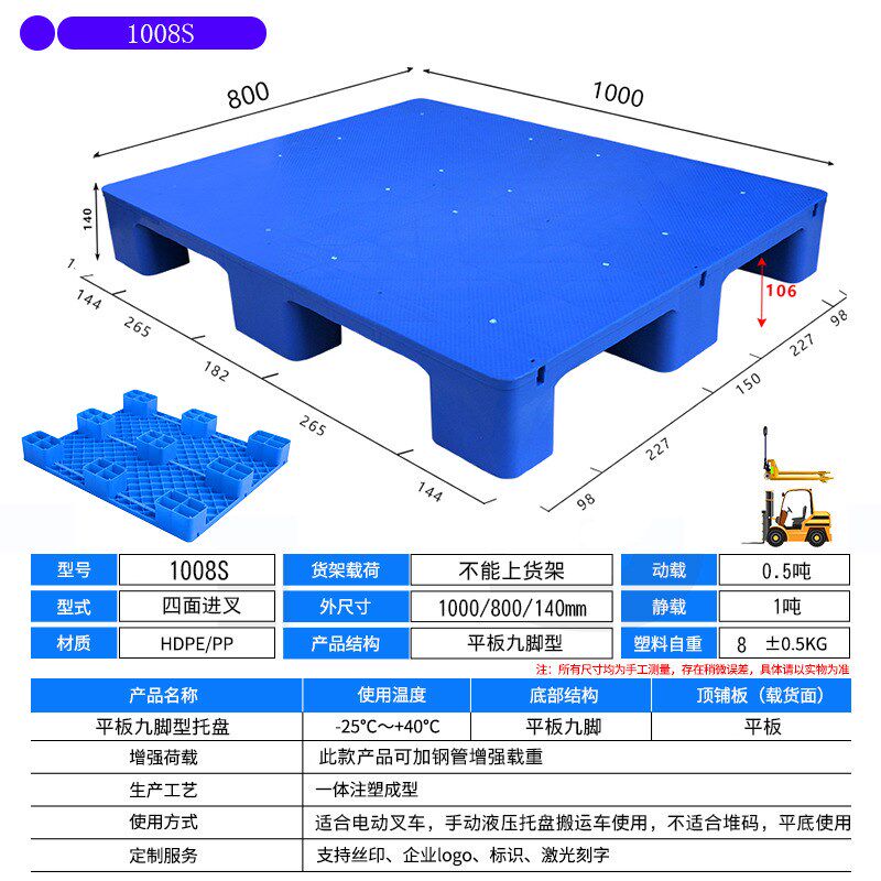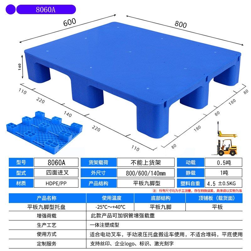 淘宝网为您提供商品防潮垫板仓库平面 物流托盘 叉车板加厚九脚平面塑料托盘叉车托盘的详细介绍,