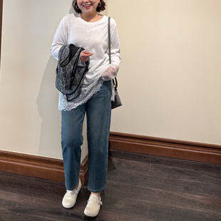 春季 胖mm高腰显腿长牛仔裤 木子理想大码 女装 200斤显瘦烟管直筒裤