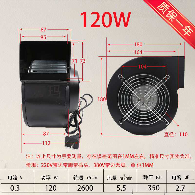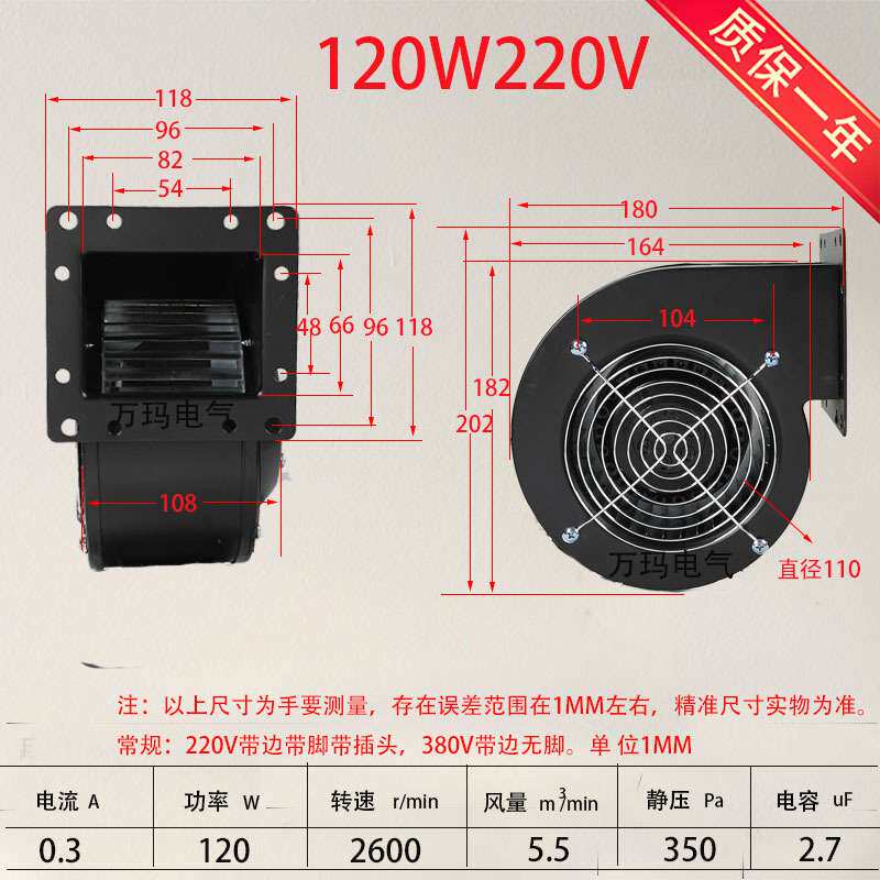 为您提供商品小型工频离心风机130FLJ5 120W220V有边有脚380v气模风机110V 2W2的详细介绍,