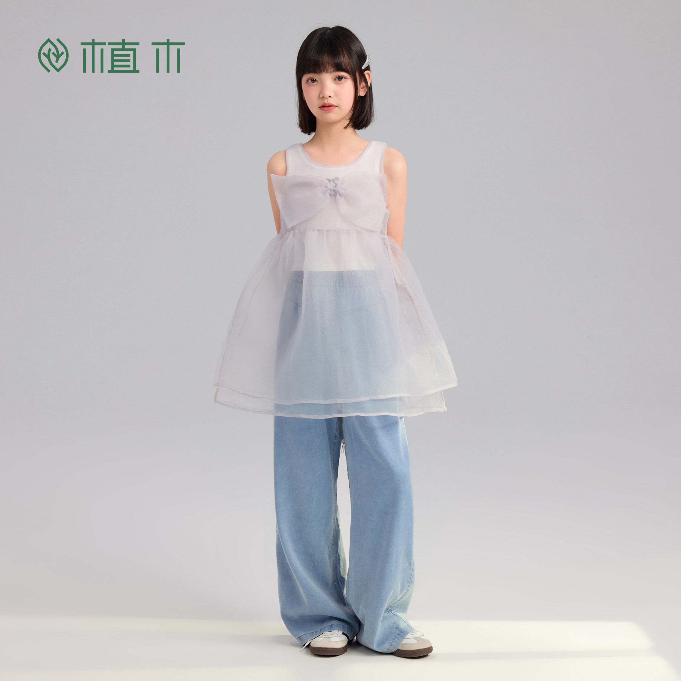 新款 植木 2026夏季 女童连衣裙青少年 风过雾散 两件套吊带纱裙由
