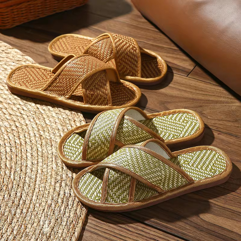 室内厚底防滑透气草编凉拖鞋 新款 藤编拖鞋 女夏季 家居用 男春秋四季由
