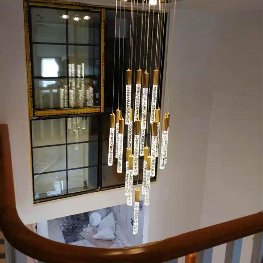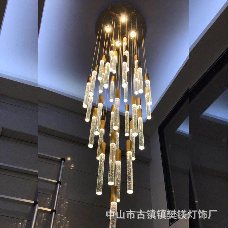 北欧式 简约灯饰 楼梯长水晶吊灯跃层中空客厅现代新中式 别墅复式